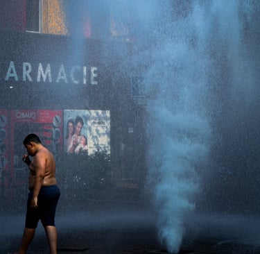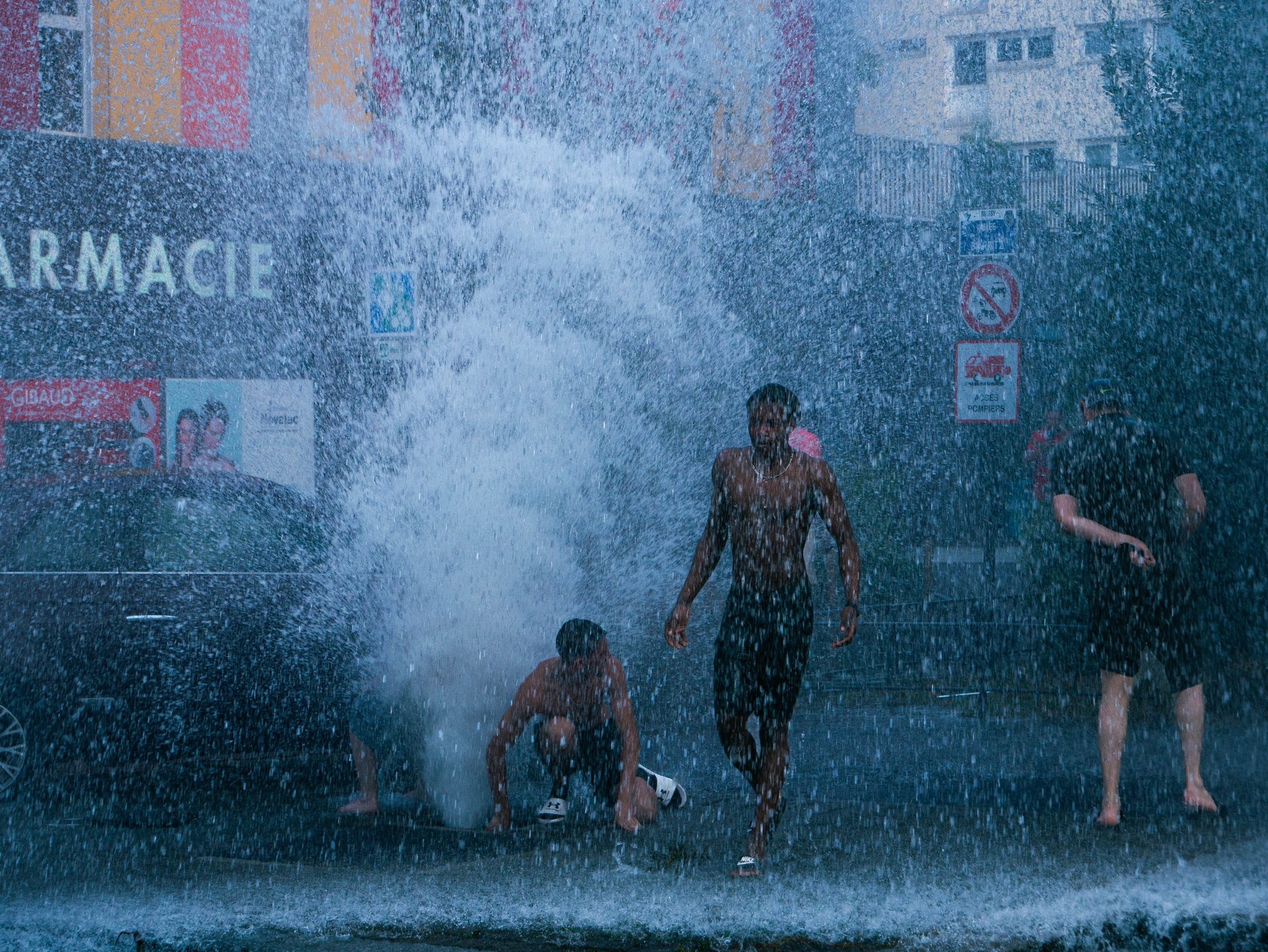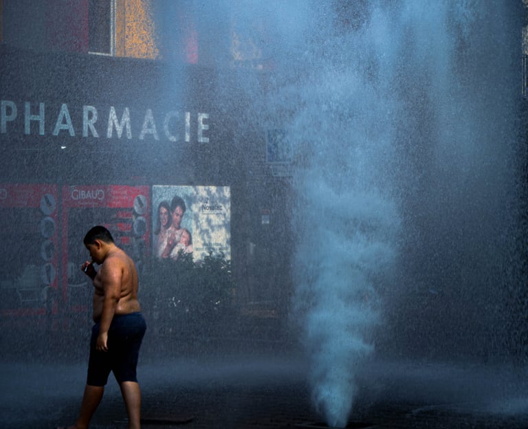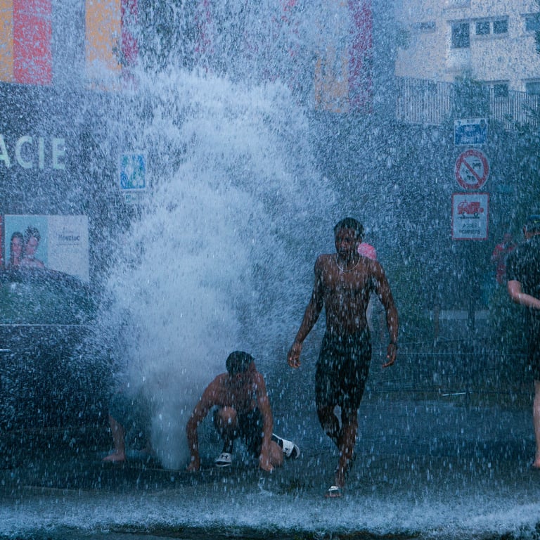 En plein cœur d'un été caniculaire, des enfants livrés à eux-mêmes ont trouvé le moyen d'ouvrir une bouche d'incendie, projetant une colonne d'eau vers le ciel.