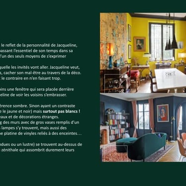 Pour les décors, je souhaitais un appartement qui soit décoré, coloré et vivant, je ne voulais en aucun cas avoir des murs blancs. Je voulais que l'on sente que des personnes vivent dedans (notamment, Jacqueline qui est femme au foyer) et que ce ne soit pas un simple lieu de passage.