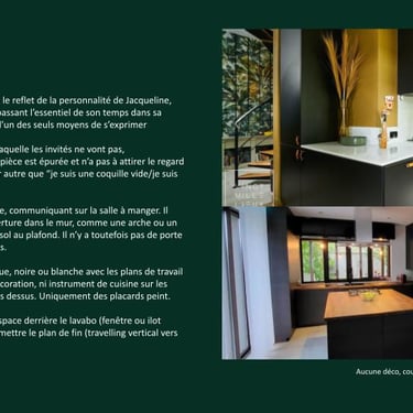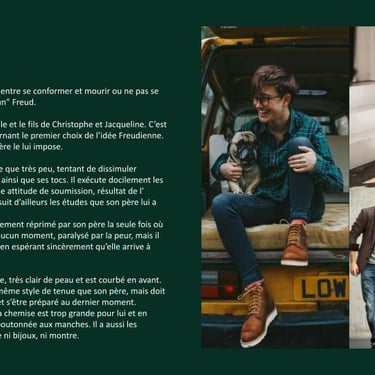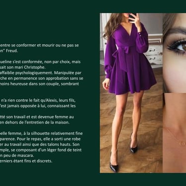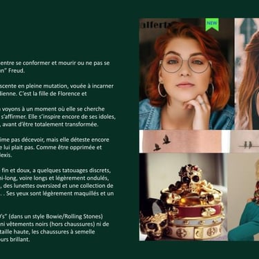 En parallèle de la réécriture, j'ai travaillé sur le moodboard, enle découpant par catgories : Lumières et cadre, Décors, costumes et personnages (HMC + un descriptif du personnage).